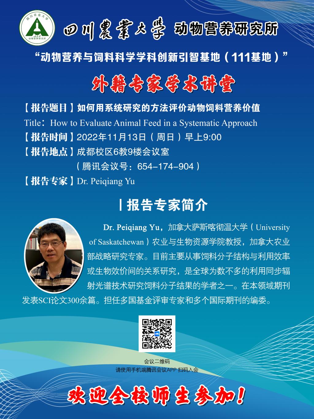 “动物营养与饲料科学学科创新引智基地(111基地)”外籍专家学术讲堂:How to Evaluate Animal Feed in a Systematic Approach?