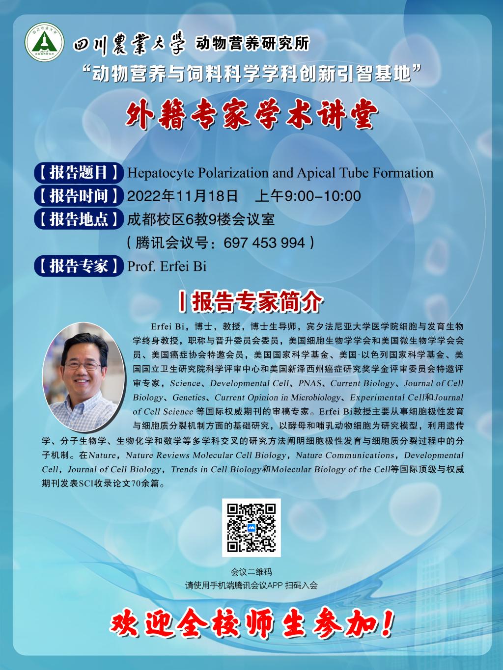 “动物营养与饲料科学学科创新引智基地” 外籍专家学术讲堂:Hepatocyte Polarization and Apical Tube Formation