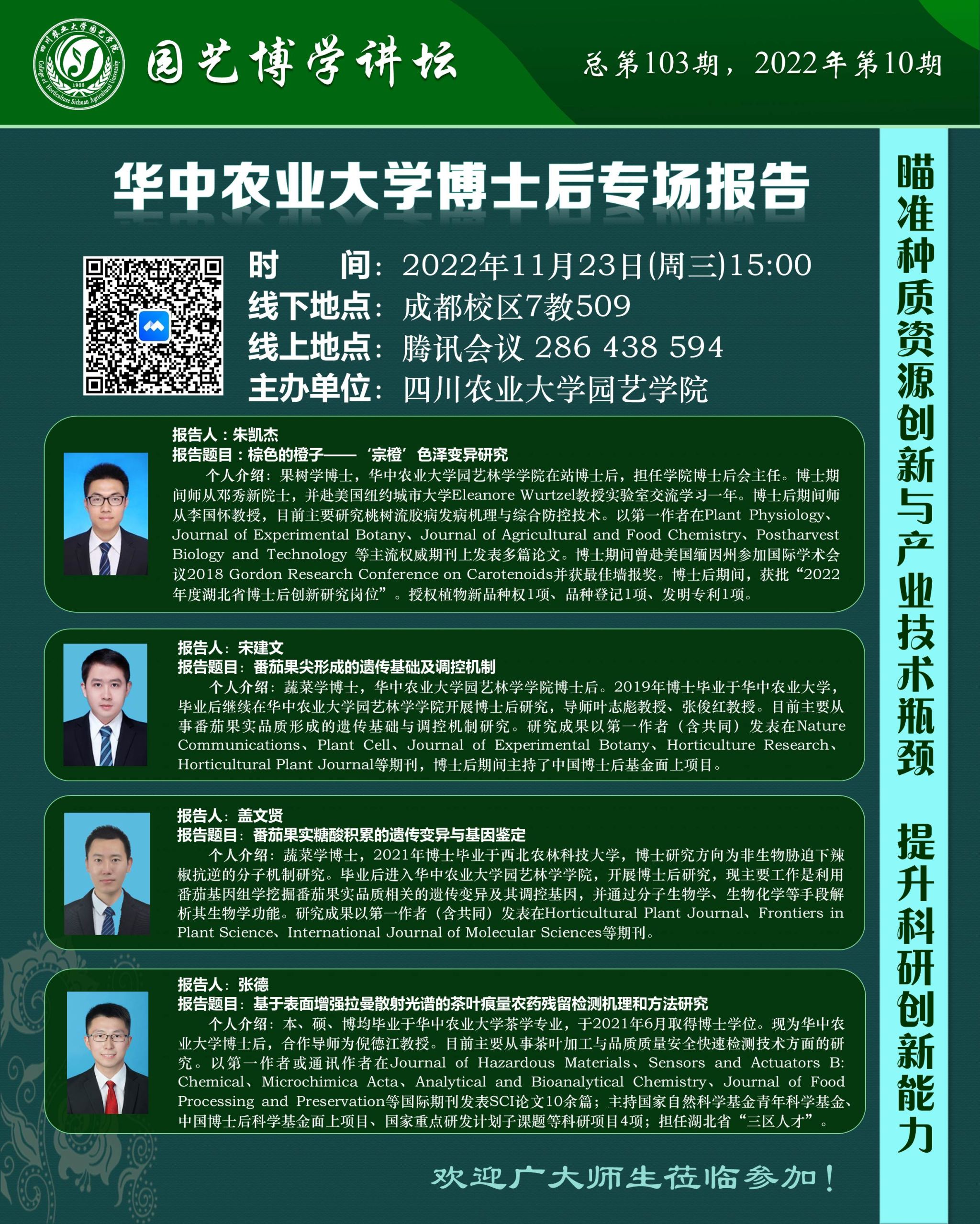 园艺博学讲坛 ——华中农业大学博士后专场报告