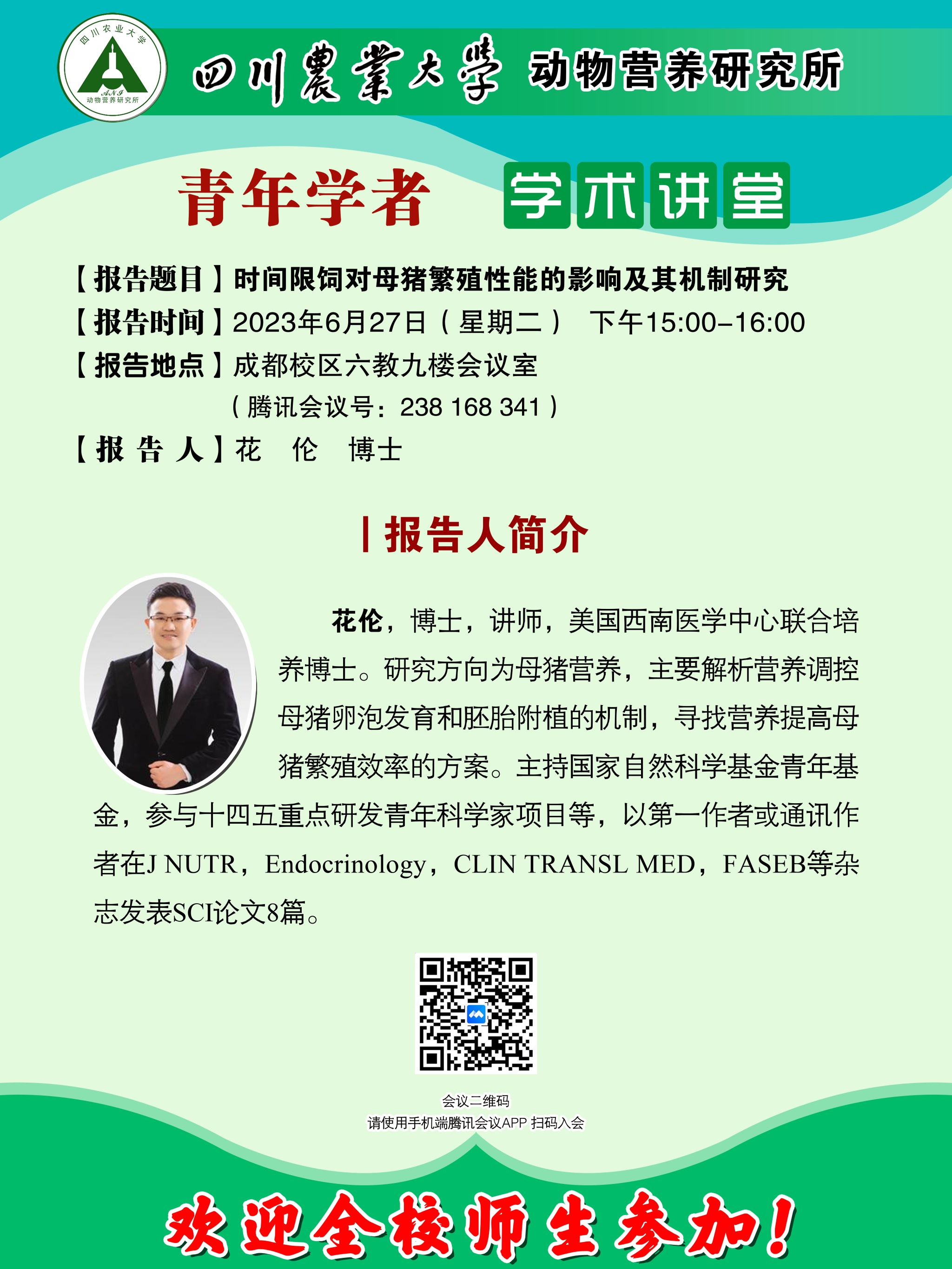 动物营养研究所青年学者学术讲堂—时间限饲对母猪繁殖性能的影响及其机制研究