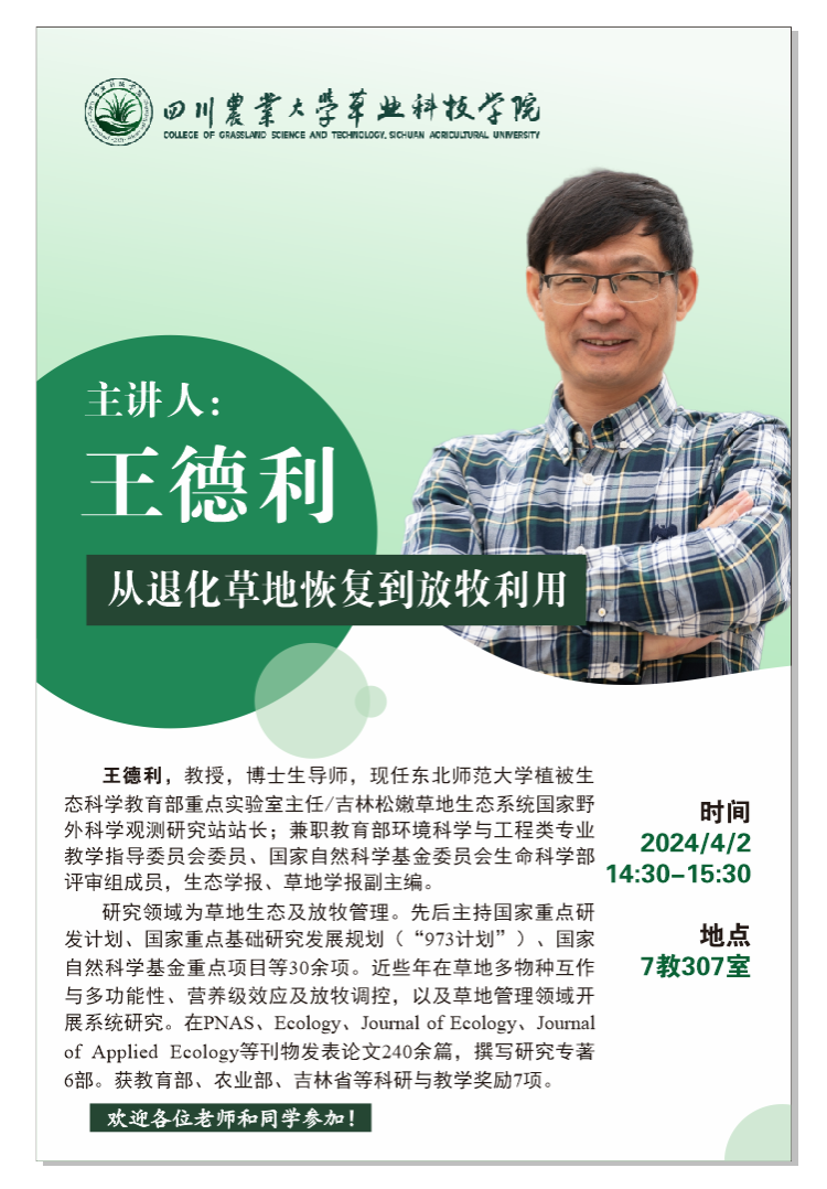 “草苑讲坛”——从退化草地恢复到放牧利用