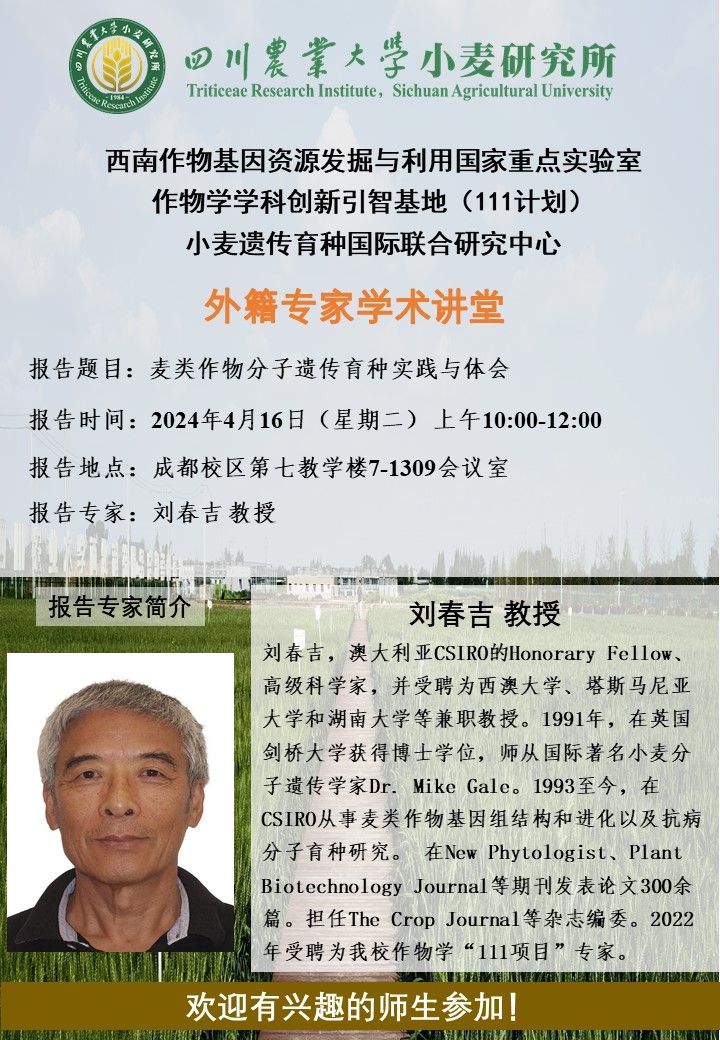 小麦研究所学术报告——麦类作物分子遗传育种实践与体会