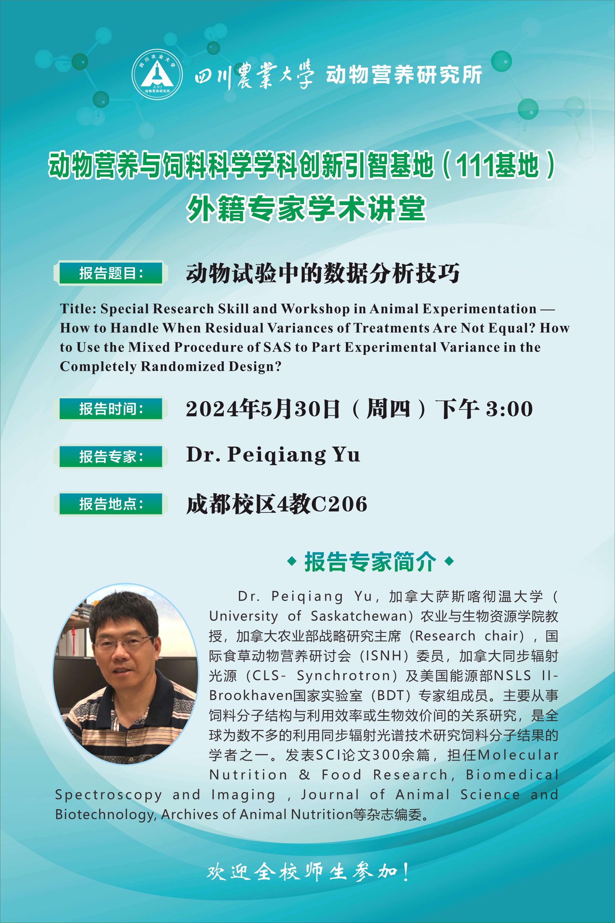 【111基地】外籍专家学术报告--动物试验中的数据分析技巧