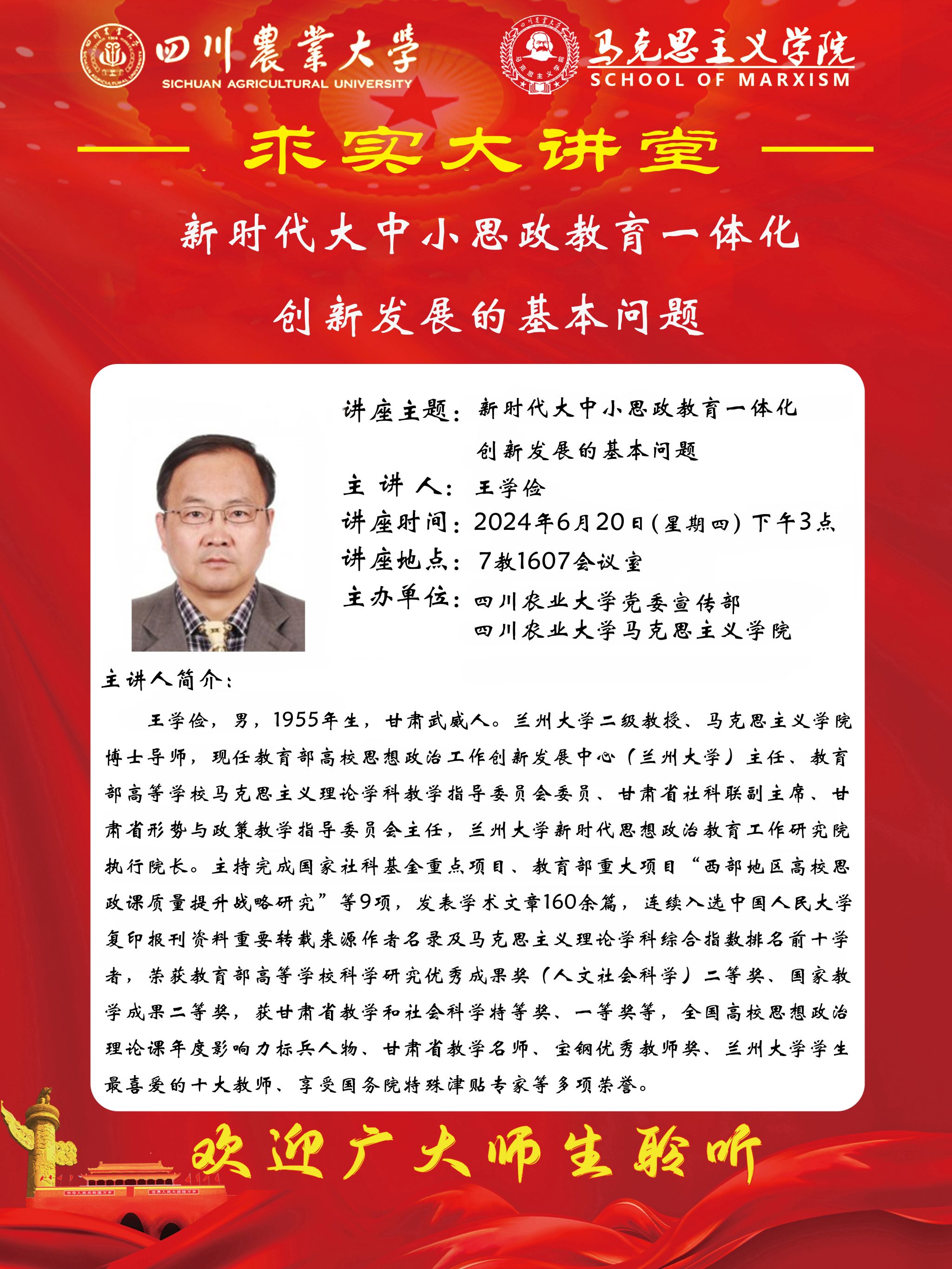 马克思主义学院求实大讲堂--新时代大中小思政教育一体化创新发展的基本问题