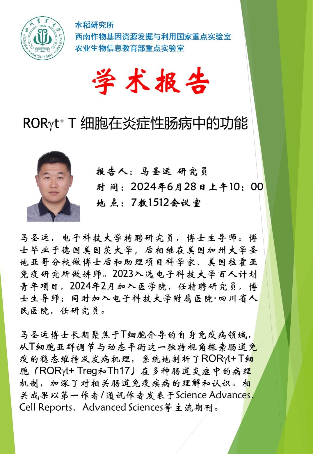 学术报告—RORt+ T 细胞在炎症性肠病中的功能