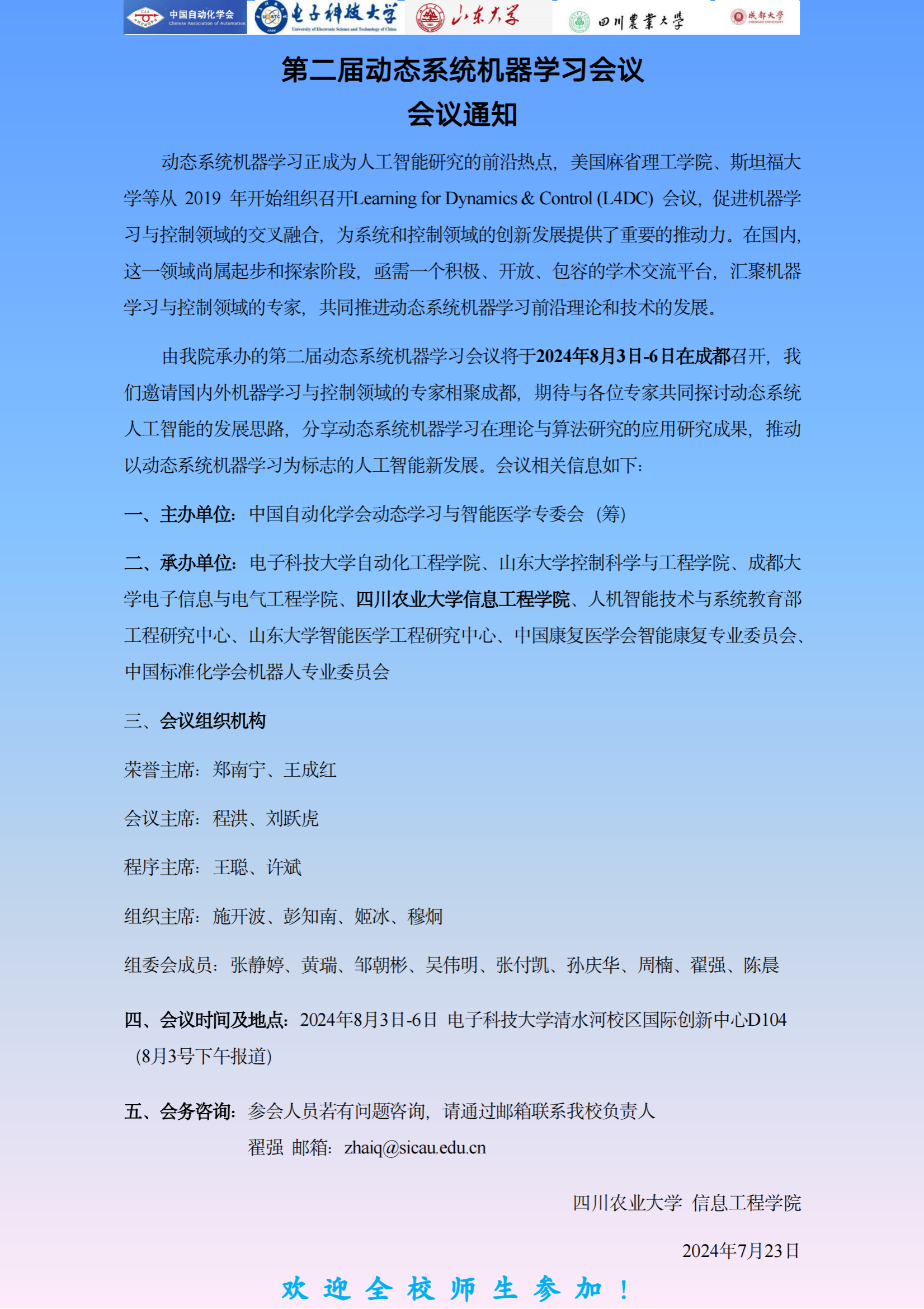 第二届动态系统机器学习会议通知