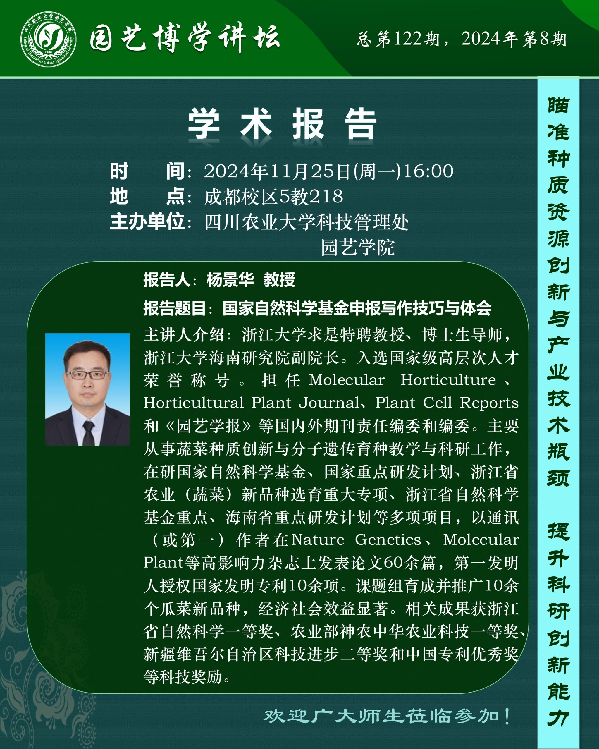 园艺博学讲坛——国家自然科学基金申报写作技巧与体会
