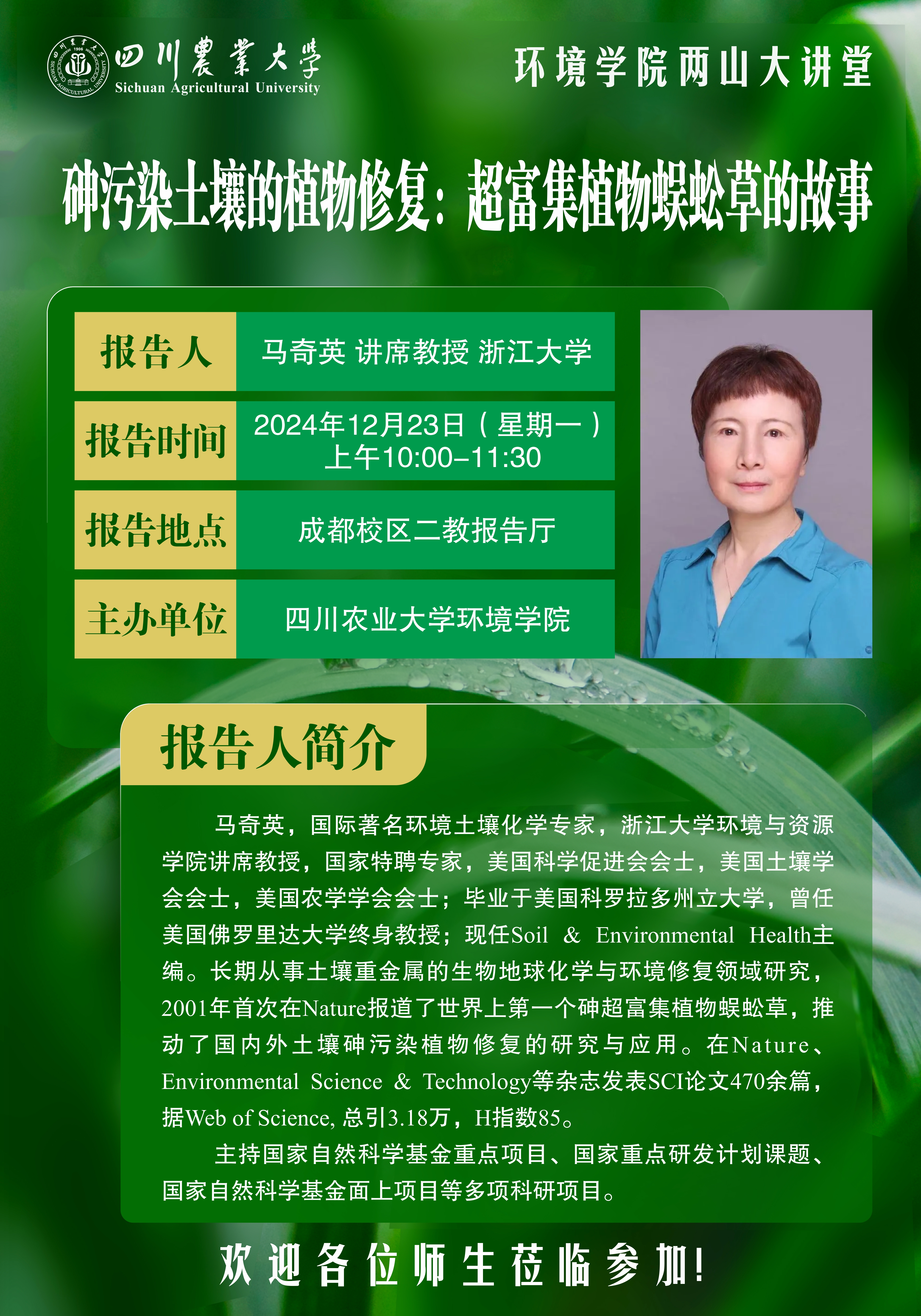 两山大讲堂—《砷污染土壤的植物修复:超富集植物蜈蚣草的故事》