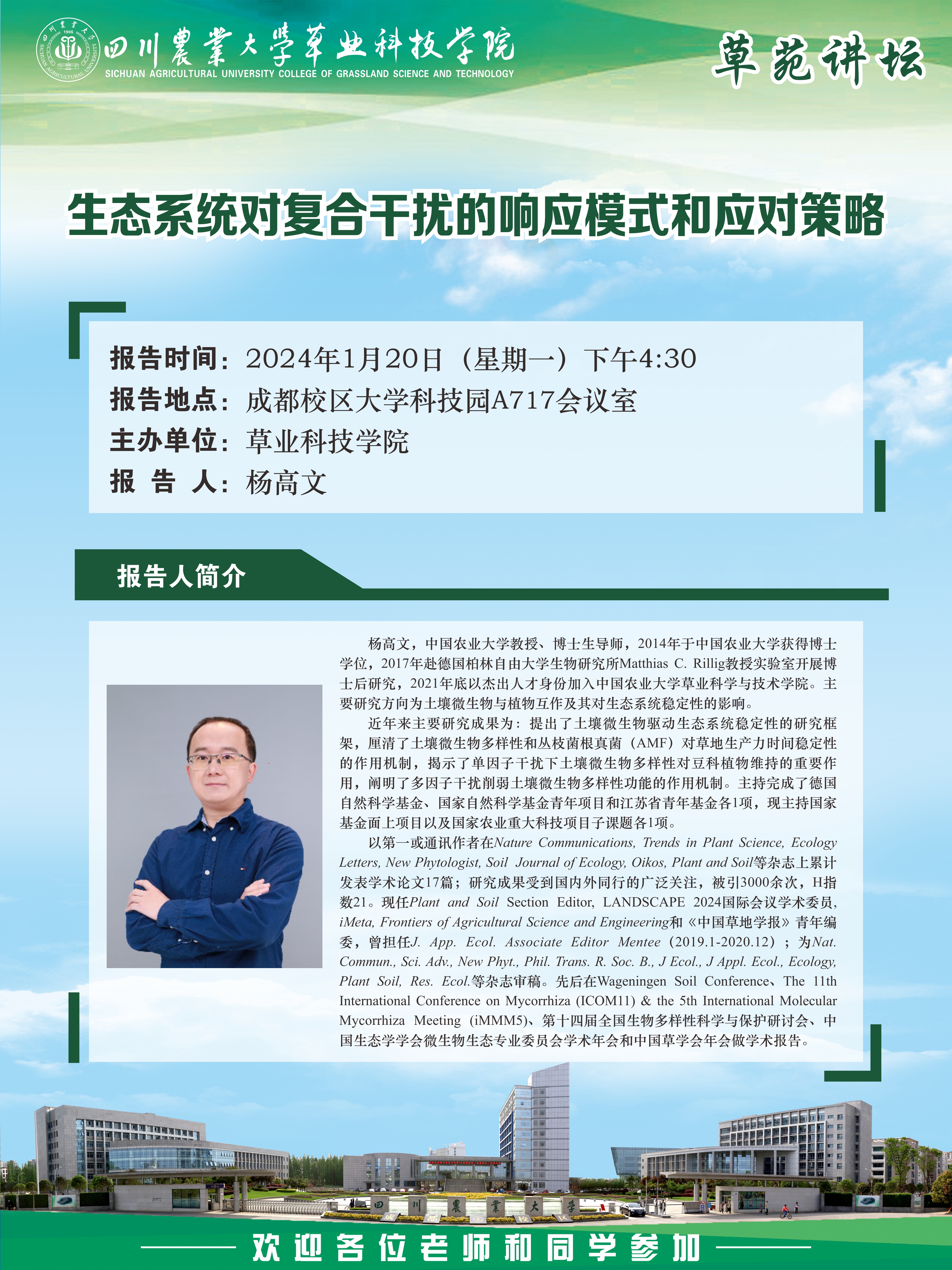 “草苑讲坛”--生态系统对复合干扰的响应模式和应对策略