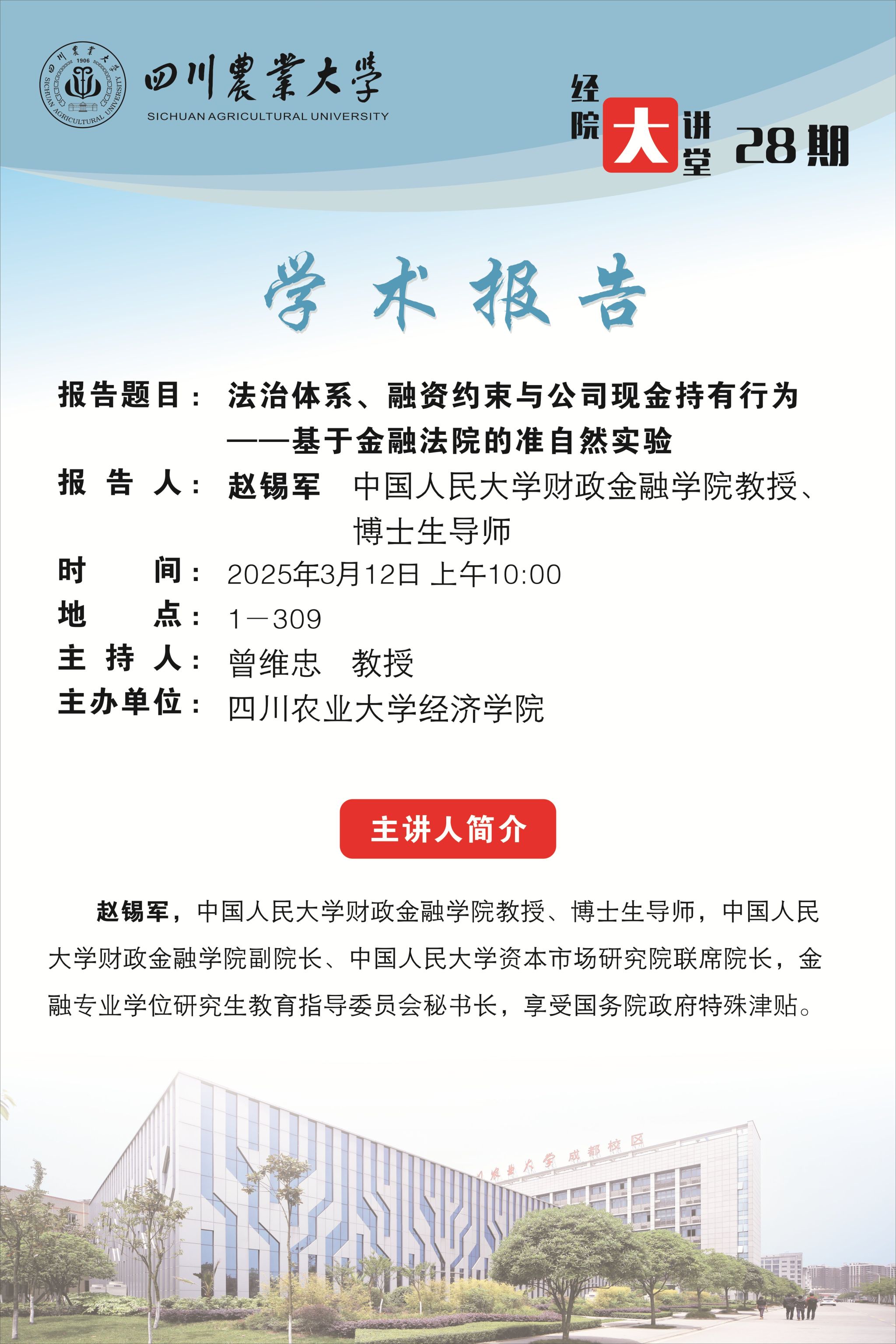 经院大讲堂28期:法治体系、融资约束与公司现金持有行为——基于金融法院的准自然实验