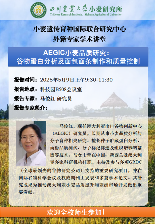 作物学天府论坛-AEGIC小麦品质研究:谷物蛋白分析及面包面条制作和质量控制
