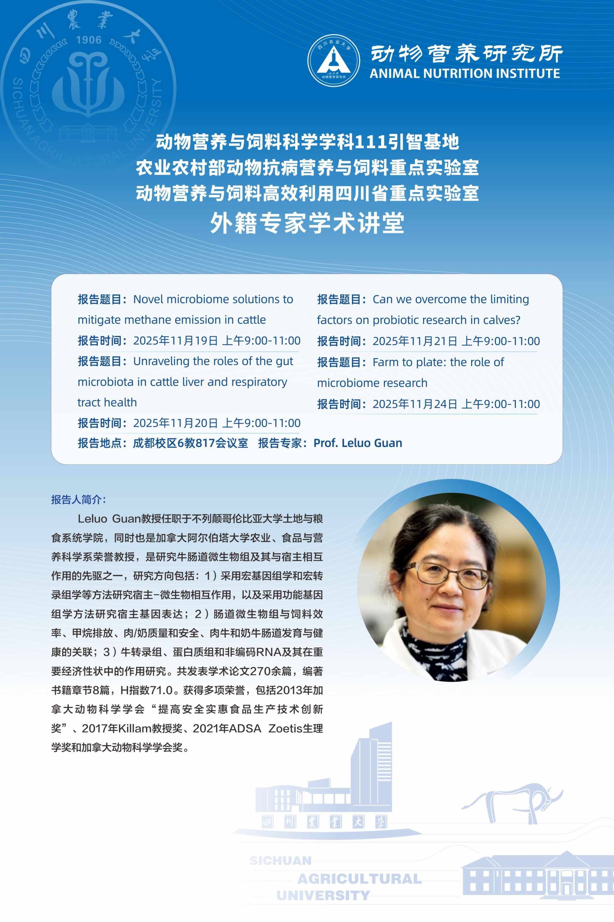 外籍专家学术讲堂:Novel microbiome solutions to mitigate methane emission in cattle