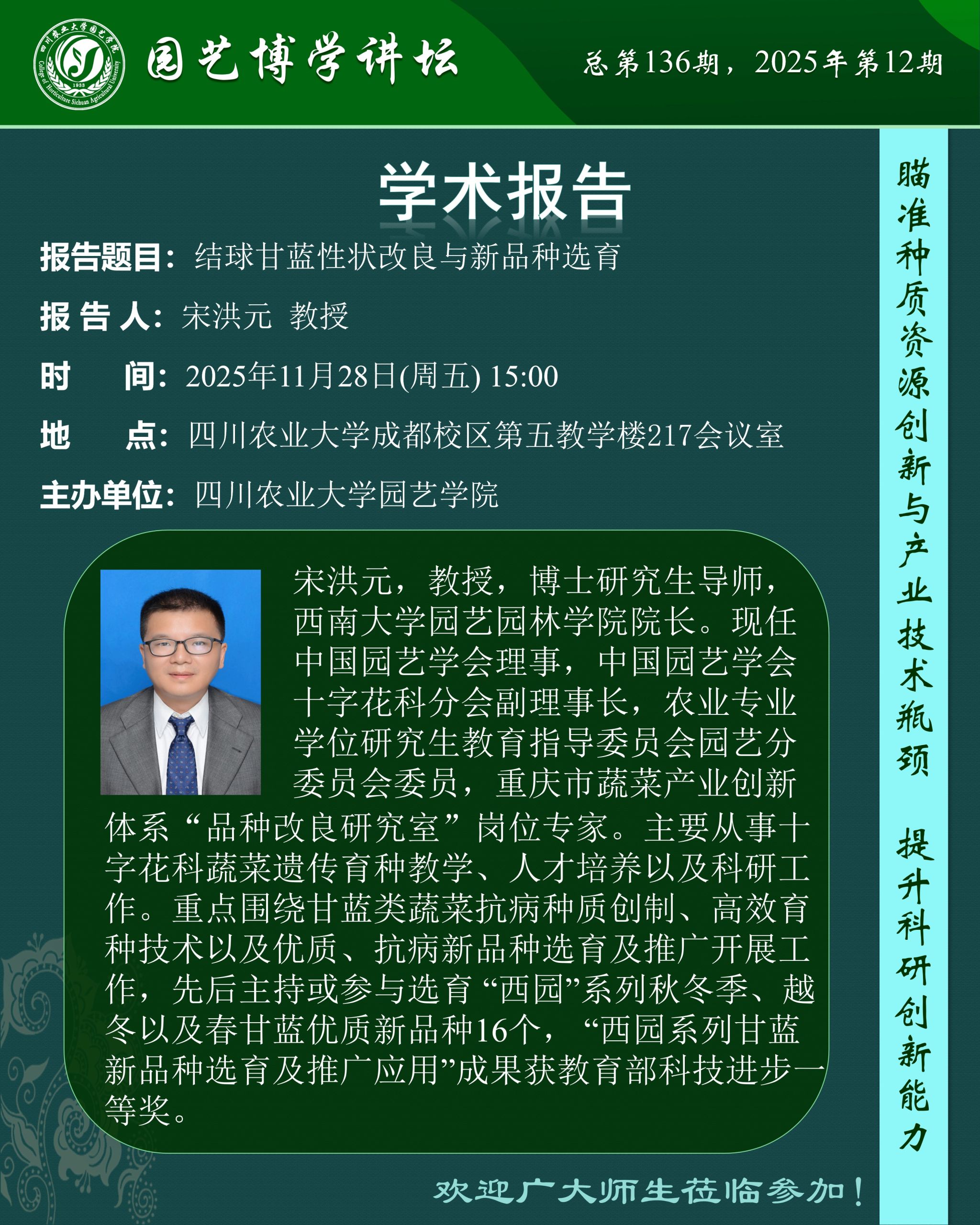 园艺博学讲坛——结球甘蓝性状改良与新品种选育