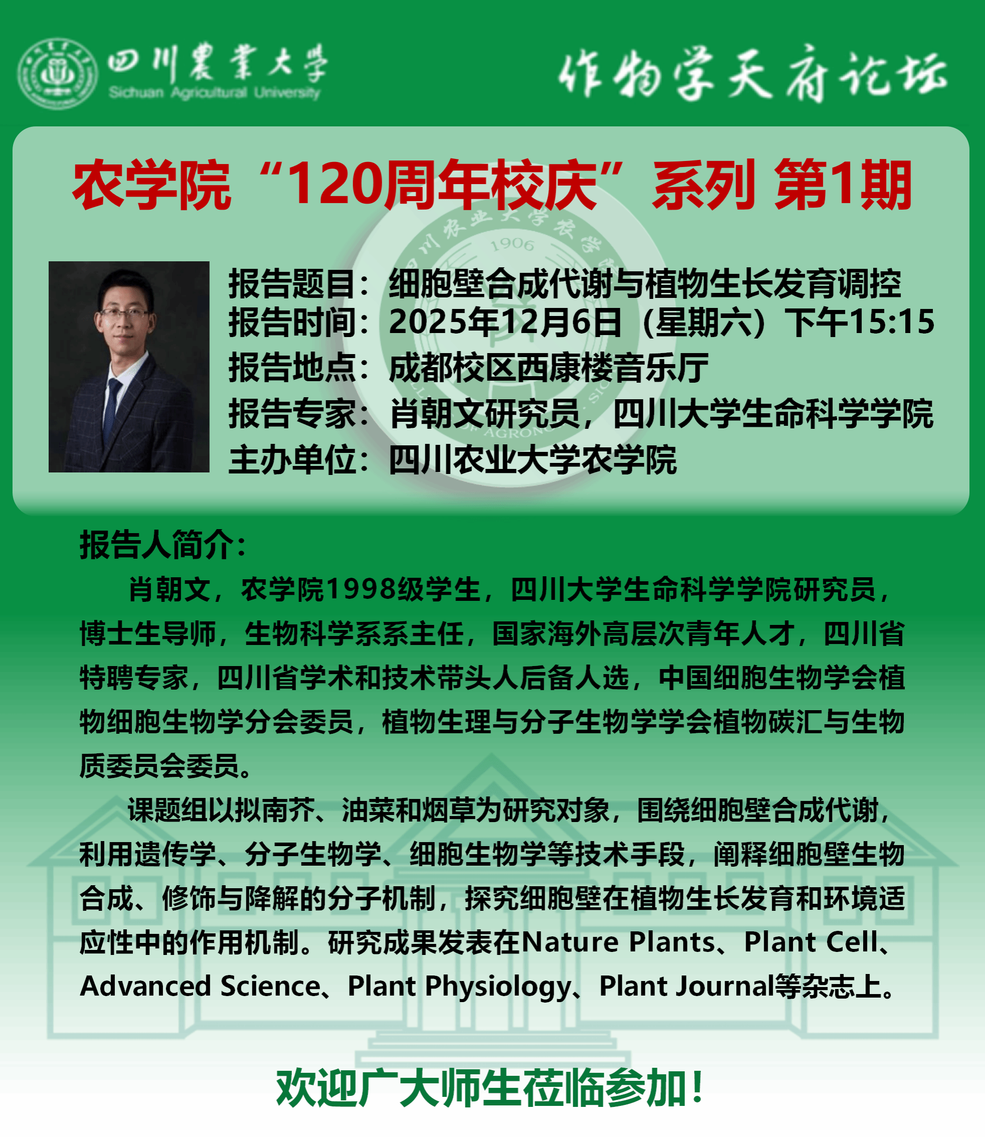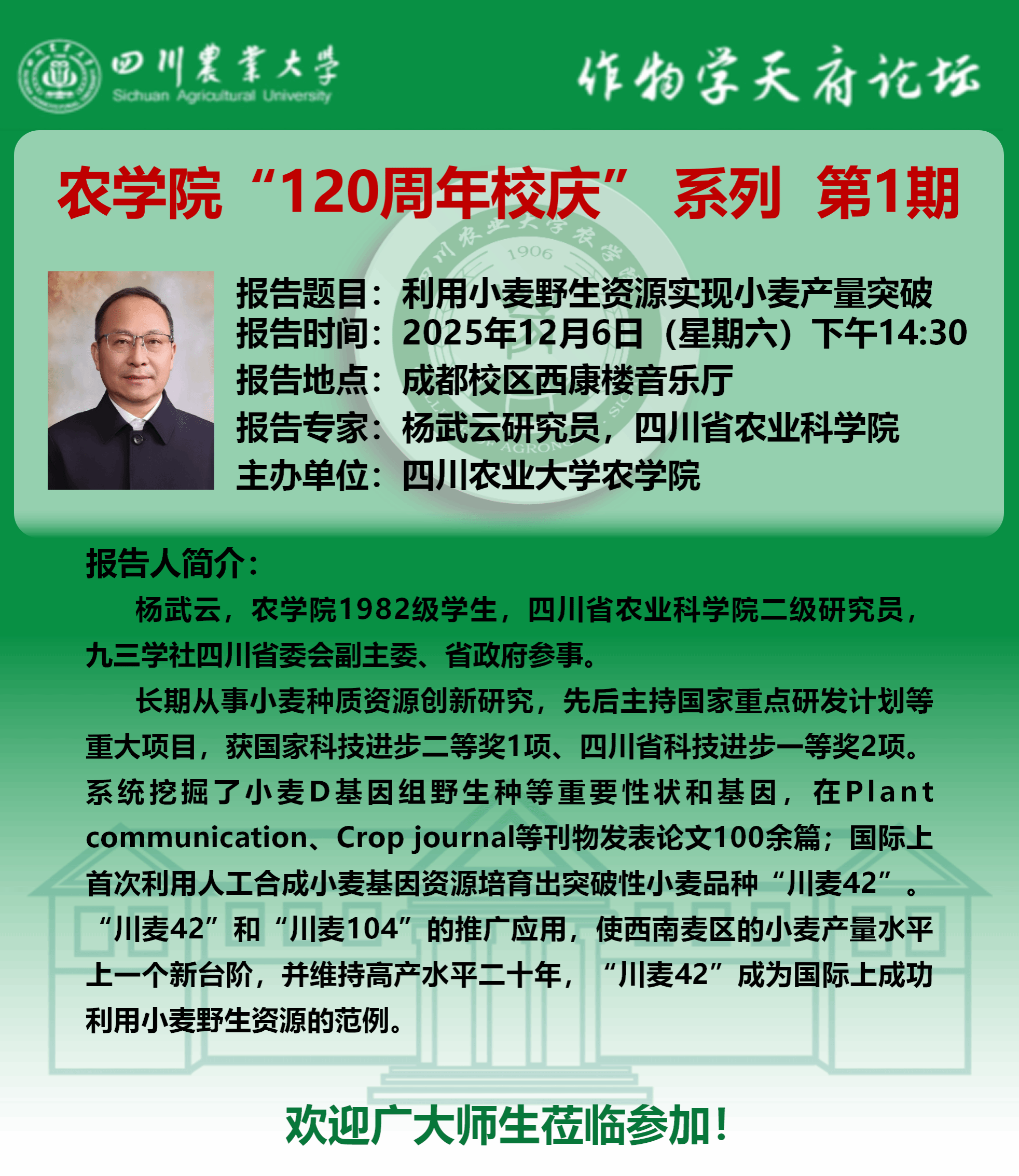 作物学天府论坛-农学院120年校庆系列第一期报告