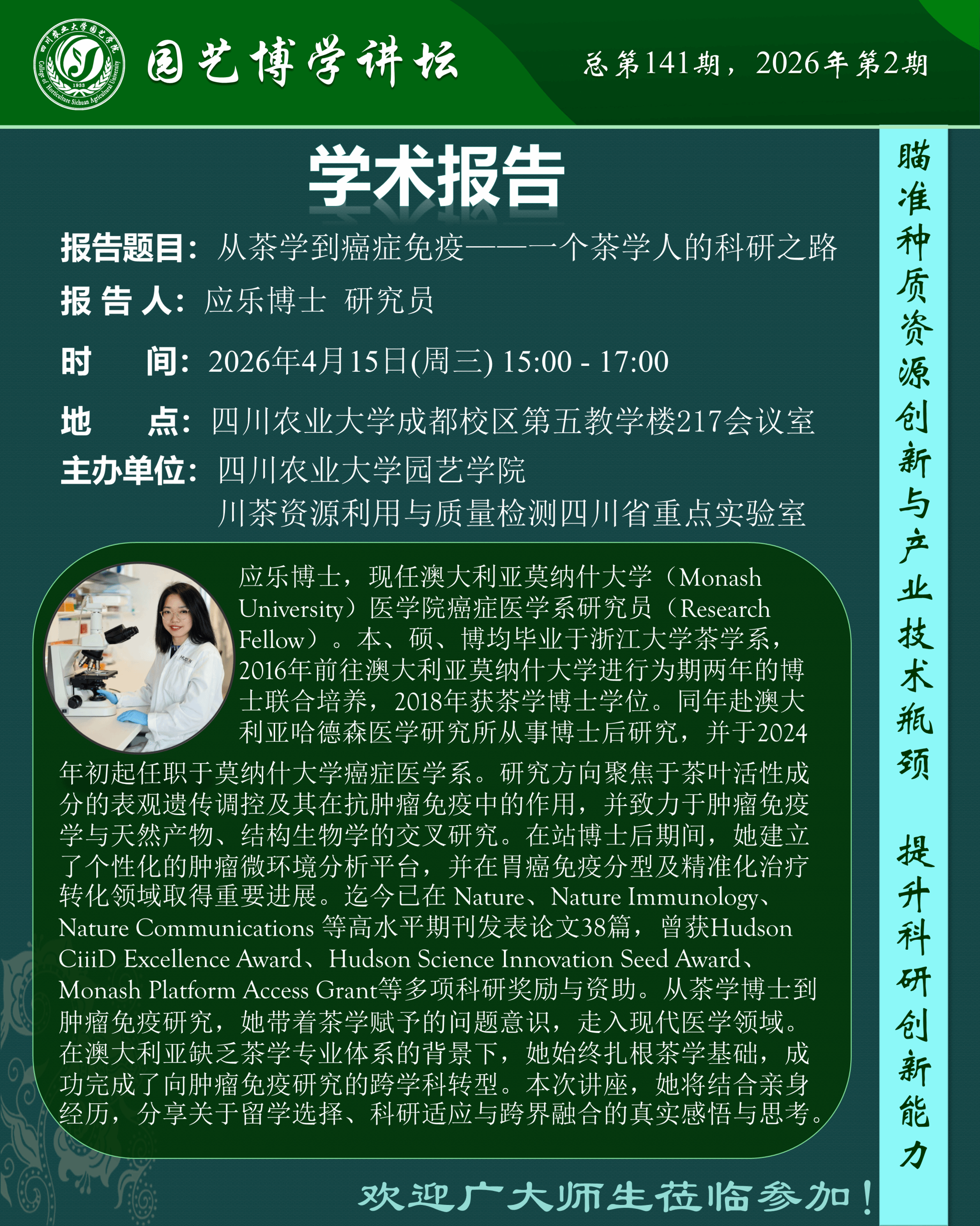 园艺博学讲坛——从茶学到癌症免疫——一个茶学人的科研之路