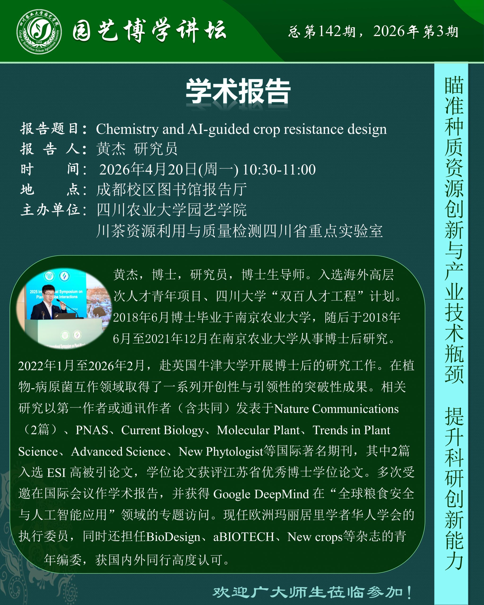 园艺博学讲坛——Chemistry and AI-guided crop resistance design