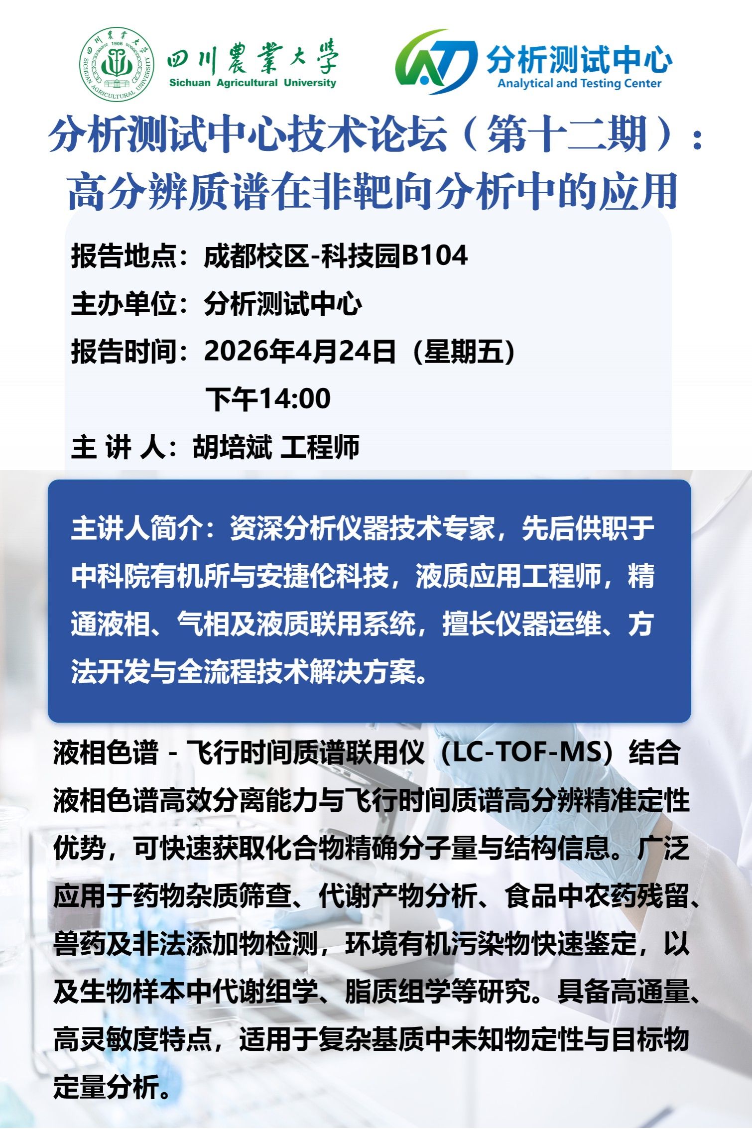 分析测试中心技术论坛(第十二期):高分辨质谱在靶向分析中的应用